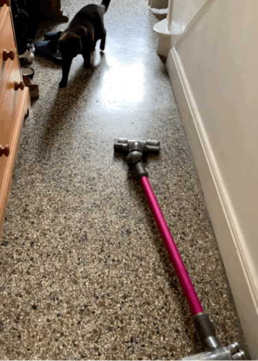 청소기를 잠깐 내려놨더니 청소기의 눈치를 보면서 살금살금 돌아오더니 지하실문에 재빨리 매달렸다.