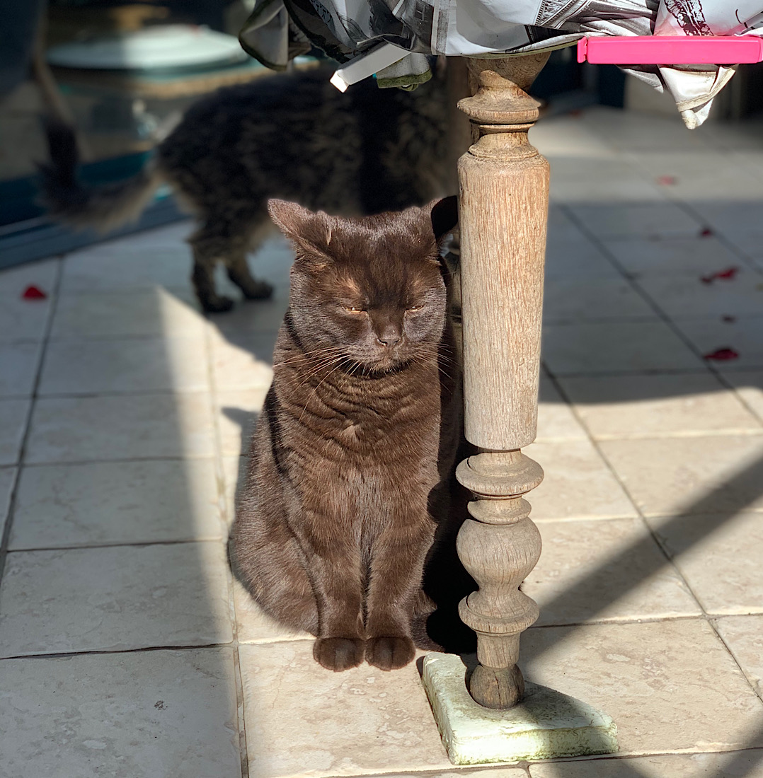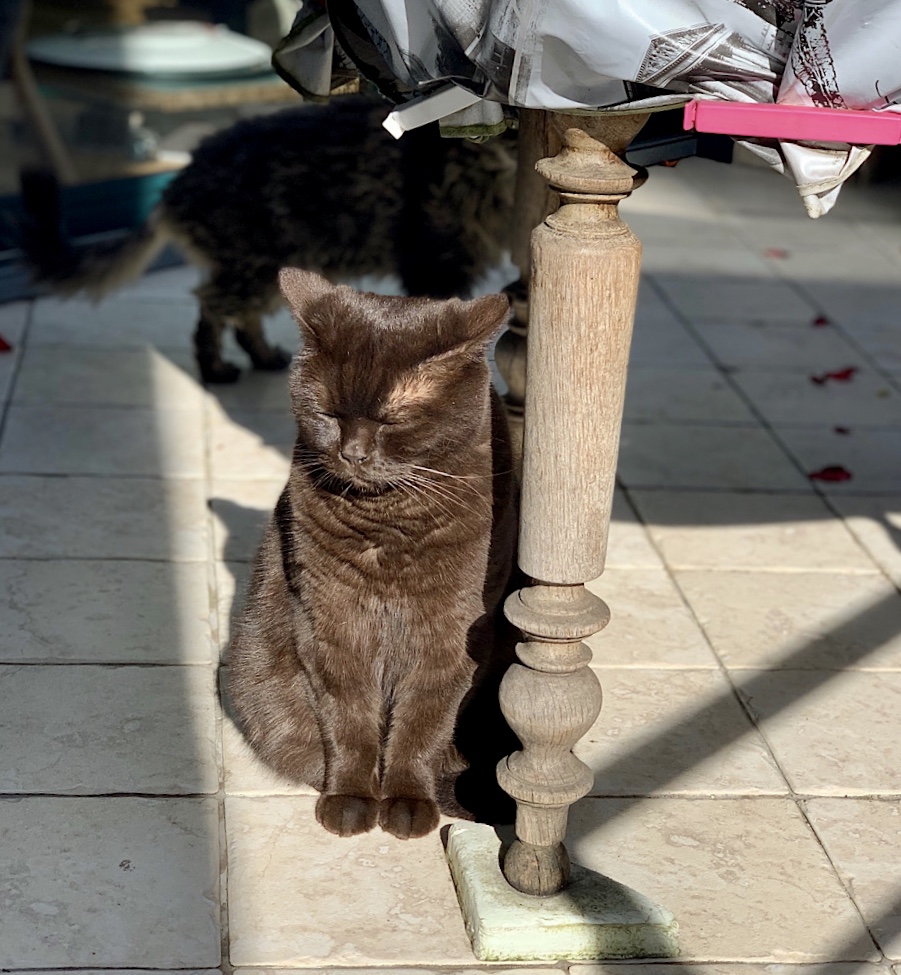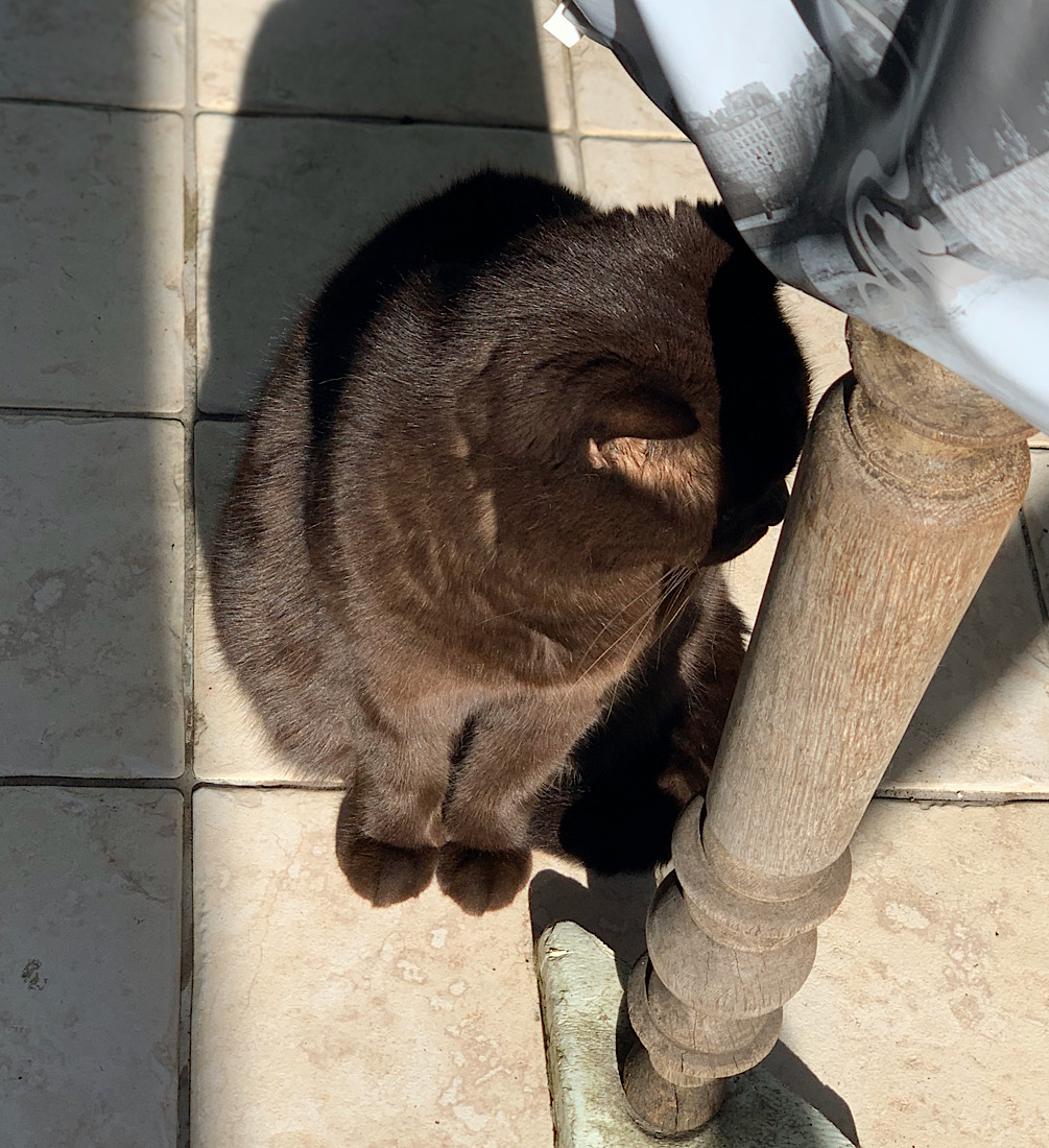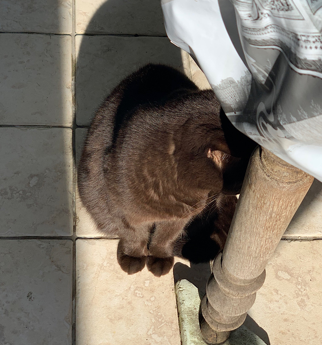 오늘도 아침 일찍부터 테라스에서 해가 잘 드는 명당을 찾았다.