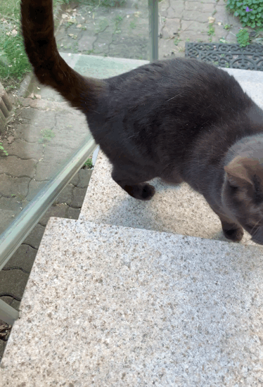 테라스 셔터는 잠그고 대신 지하실 문을 열어 두고 가셔서 고양이들이 지하실에서 정원으로 통하는 작은 고양이 통로를 이용해서 자유롭게 실내외를 드나들고 있었다.