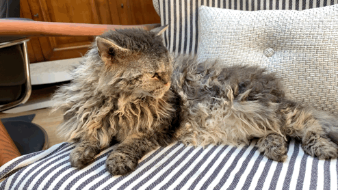 바로 새 소파에 올라가서 편안하게 자리를 잡았다.