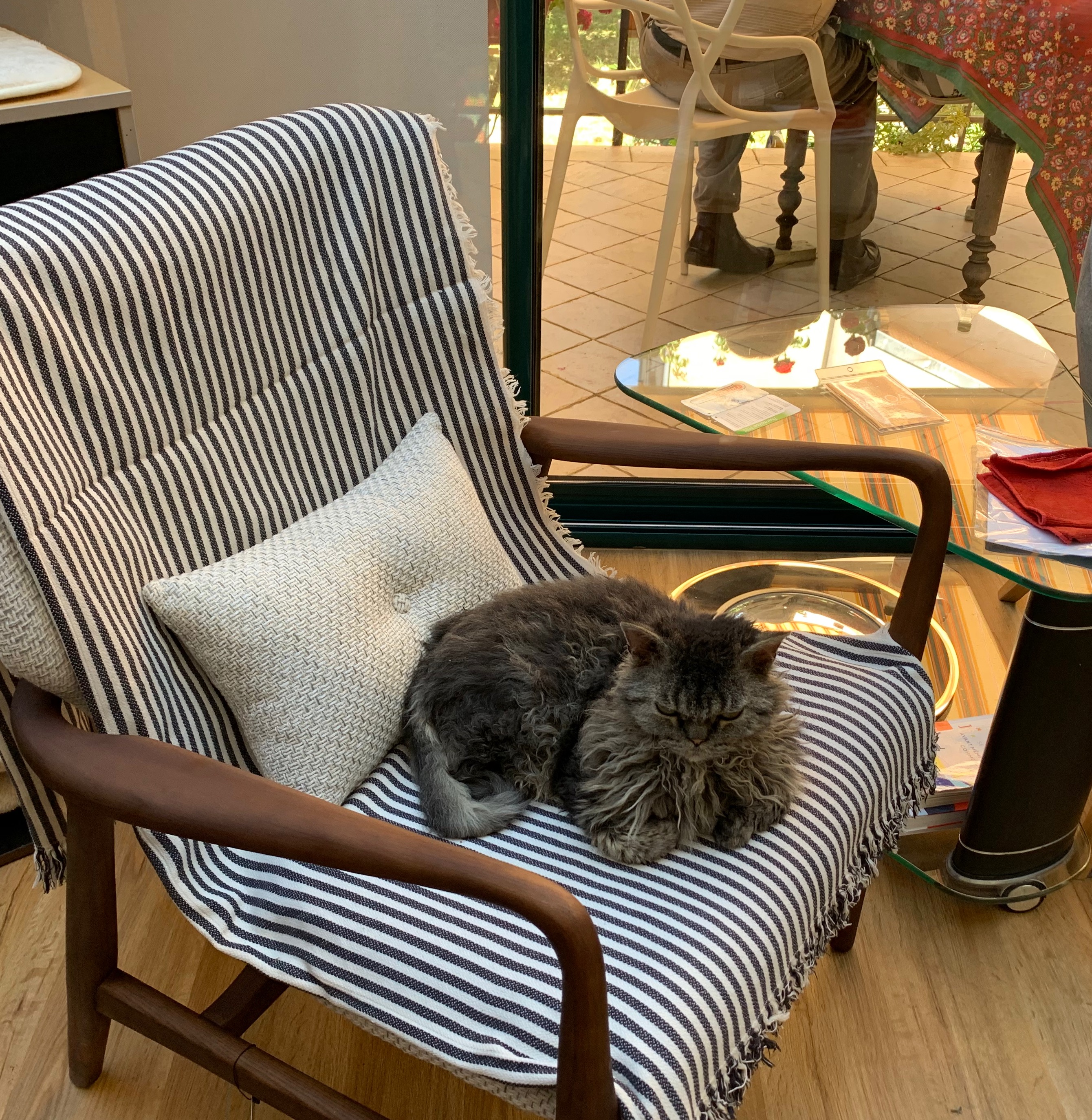 마치 원래 있던 의자를 대하듯 자연스럽게 새 의자에 올라가서 자리를 잡은 모웬.