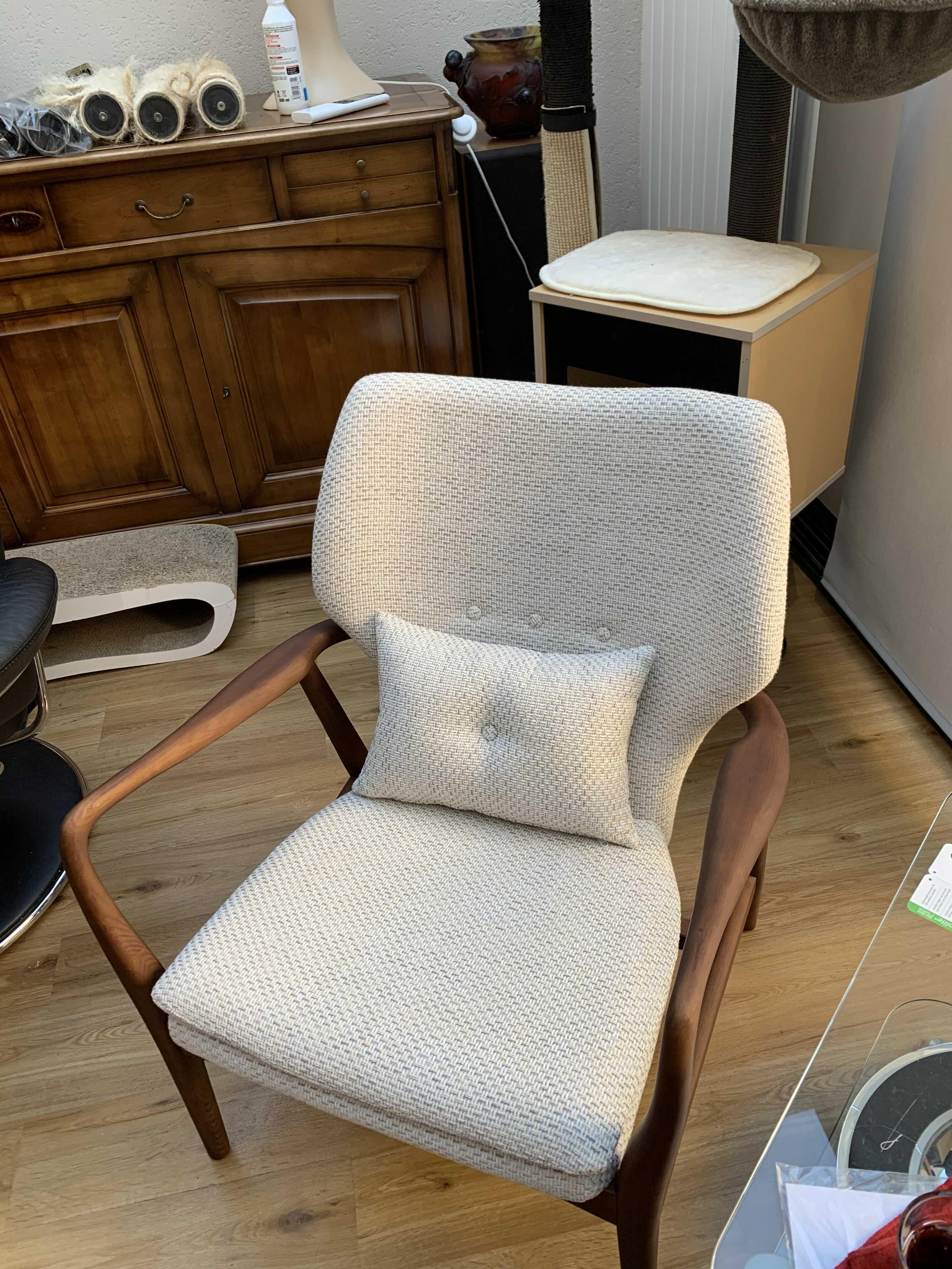 밝은색 소파와 기존보다 아담해 진 팔걸이 의자들이 새 가족으로 들어왔다.