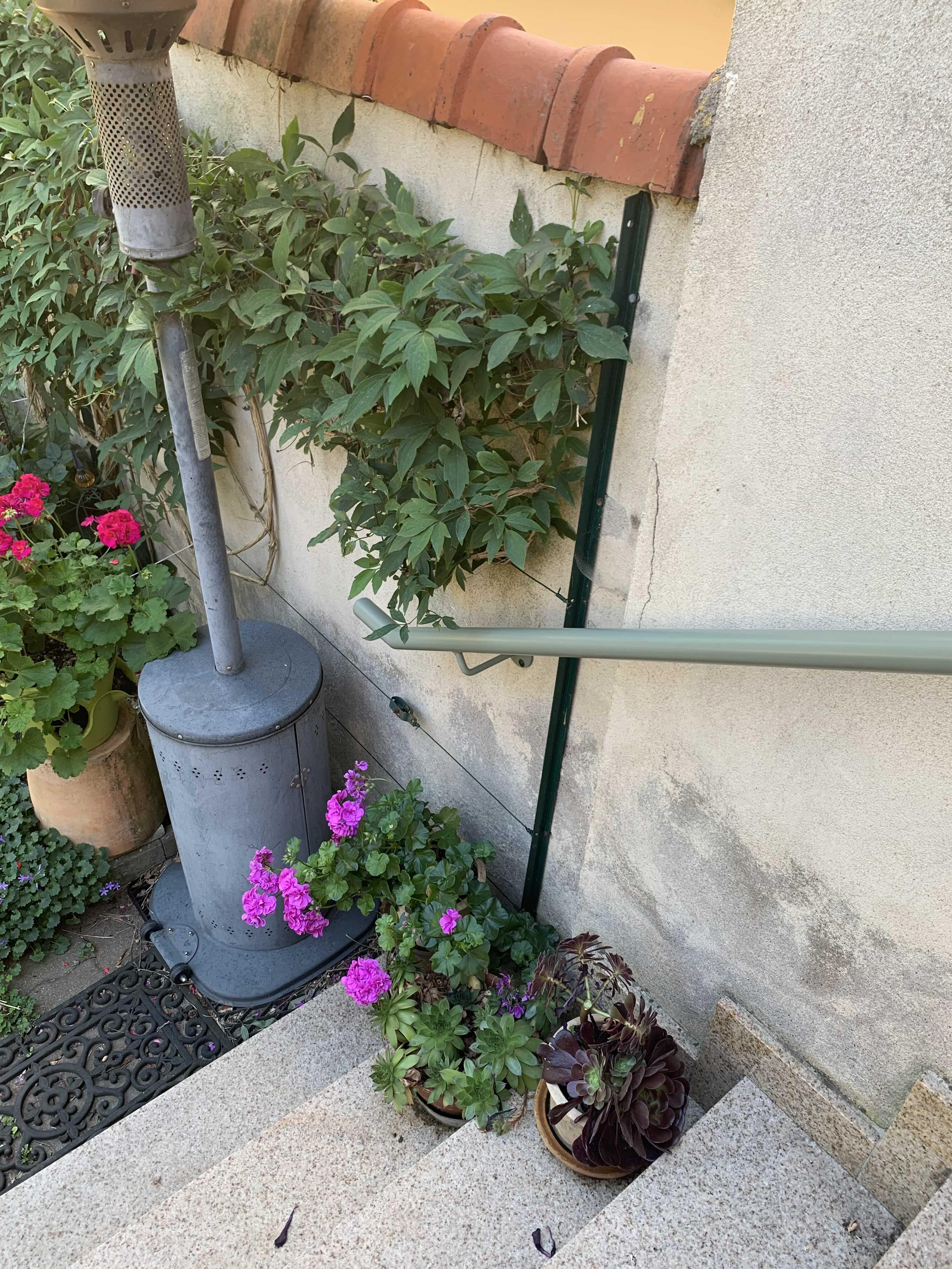 그걸 아시면서도 우리 시아버지는 틱스가 좀더 편하게 뛰어내리게 해 주실 의도는 없으신듯 화분들을 계속 그곳에 갖다놓으신다.