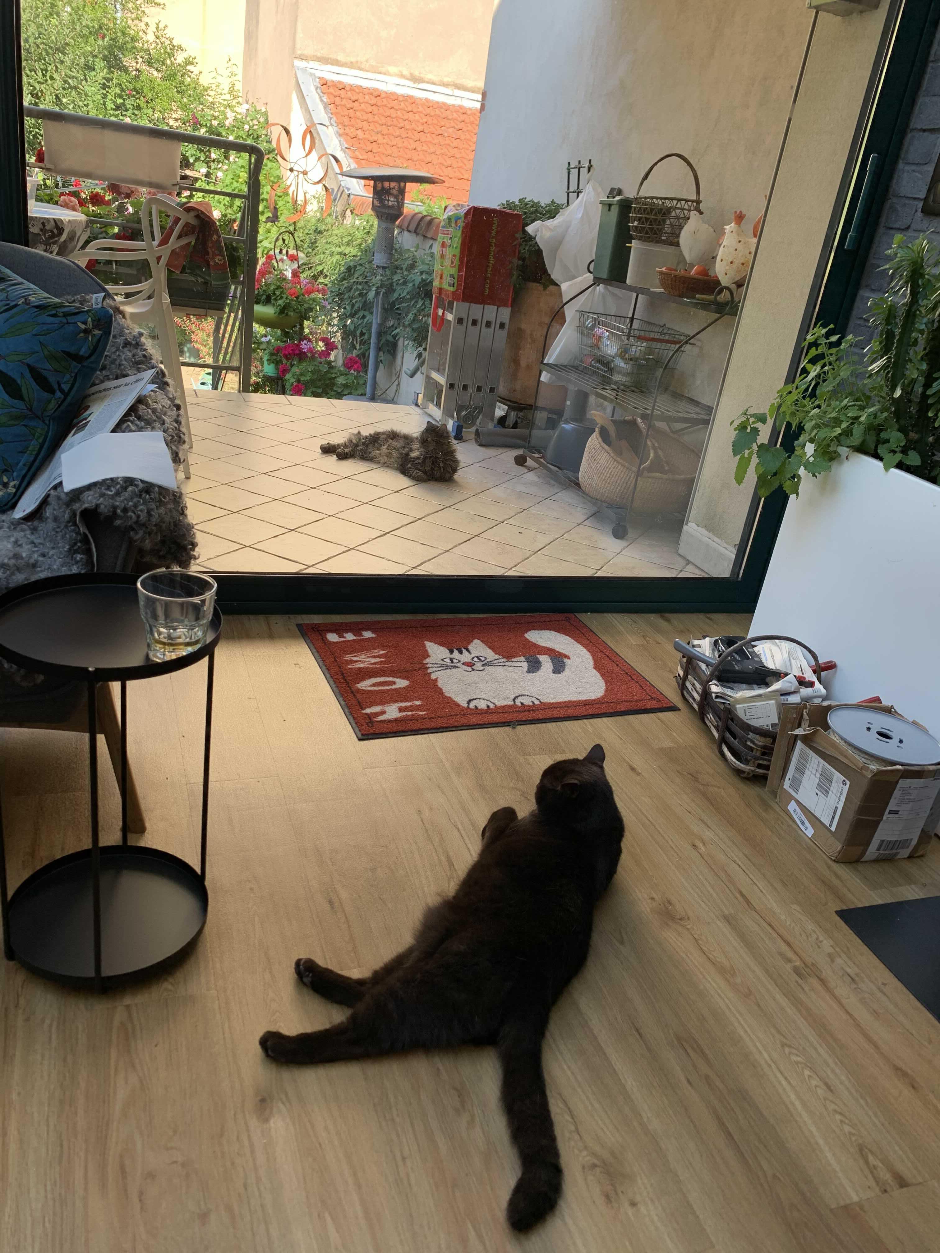 이렇게 시원하고 좋은데 왜 이 고양이들은 더운 정원에 축쳐져있는것일까...
