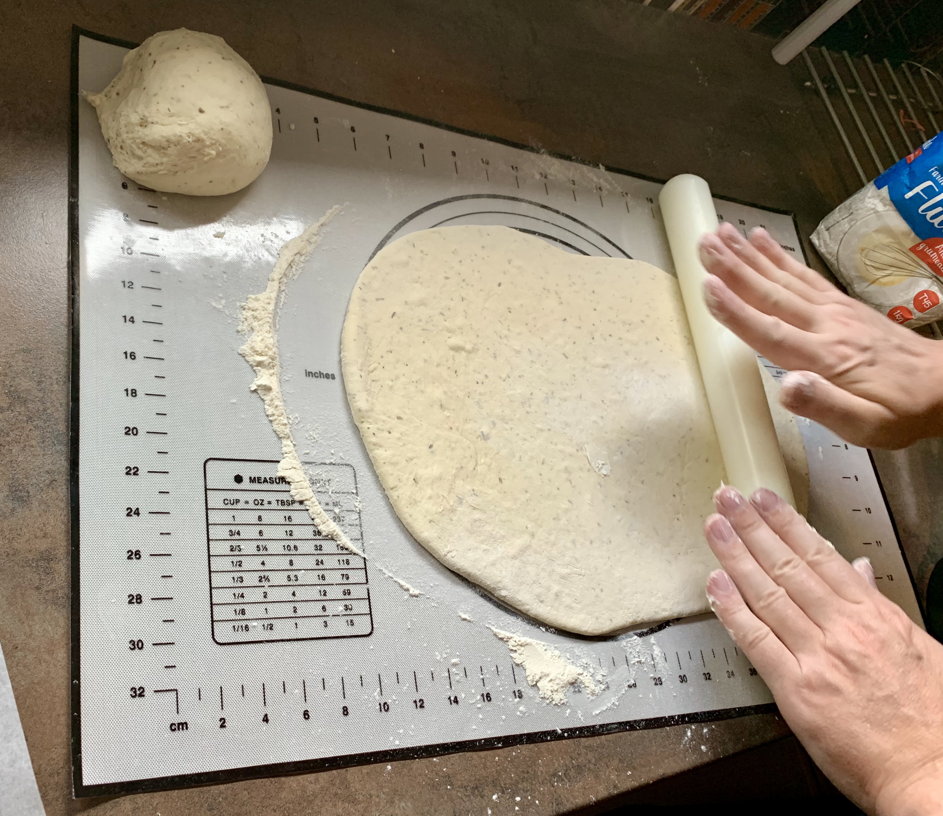 우리는 재료를 반죽기에 넣고 간단히 반죽을 했지만 손으로 치댈거라면 최소 5분 이상은 치대야 한다. 세게 바닥을 내리치면서 말이다. 그리고 동그랗게 랩에 싸거나 양푼이에 넣고 위에 랩으로 덮어서 상온에 한시간 정도 뒀다가 부풀면 가스를 빼주면서 한번 더 치대 준 후 냉장고에 뒀다가 다음날 사용하면 된다. 냉장고에 보통 12시간 정도 두면 될 것 같다. (솔직히 요즘에는 귀찮아서 그냥 반죽기로 10분이상 돌리고 동그랗게 랩에 싸서 그대로 냉장고에 넣어뒀다가 다음날 바로 사용한다.