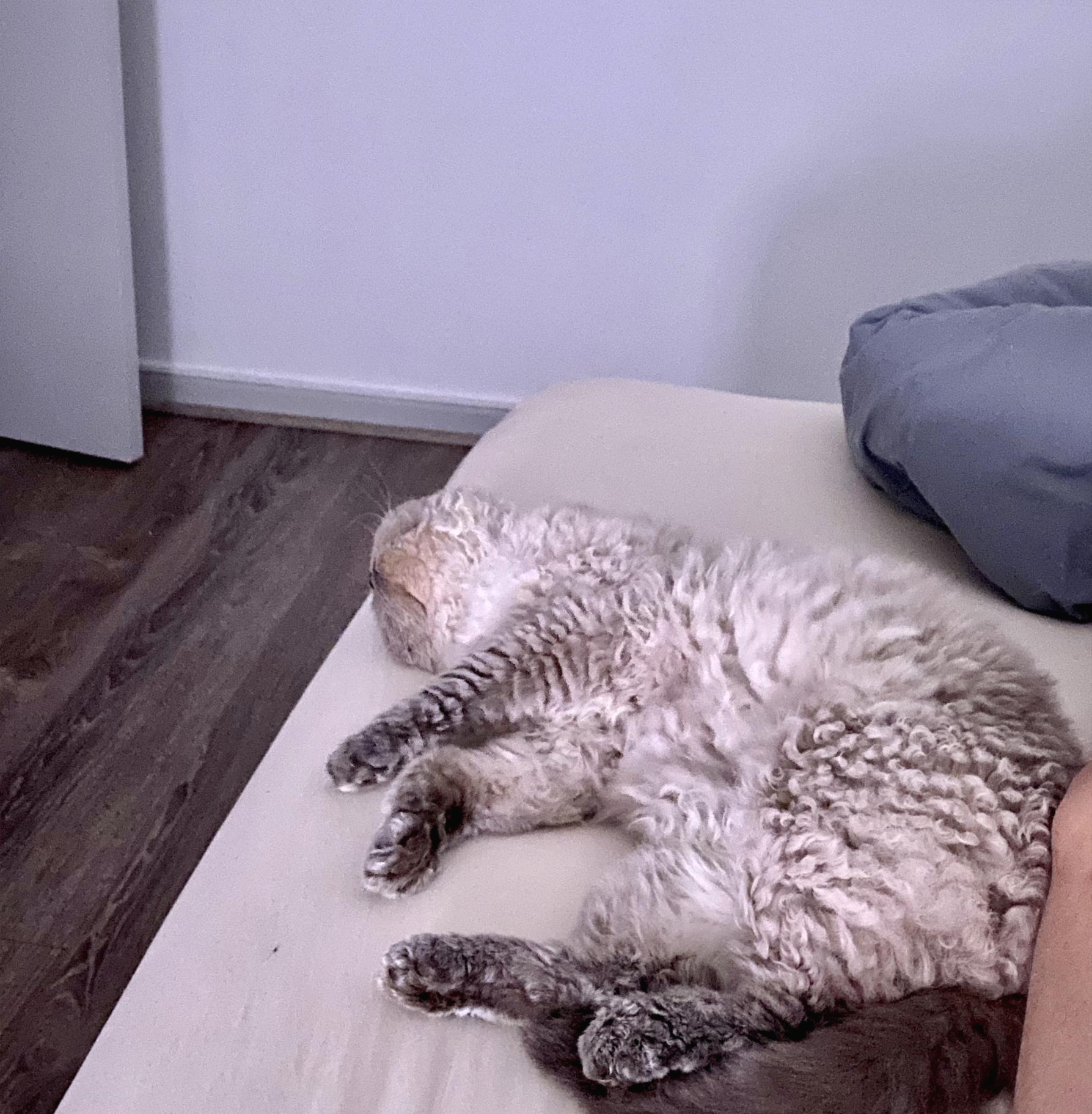 무스카델이 밤새 야옹거리면서 우리 침대 주변을 맴돌던걸 나도 기억하고 있다. 야옹 소리가 얘는 좀 남다르다. 스타카토로 짧게 양~ 양~ 하고 다니는데 낮에 들으면 굉장히 귀엽다.