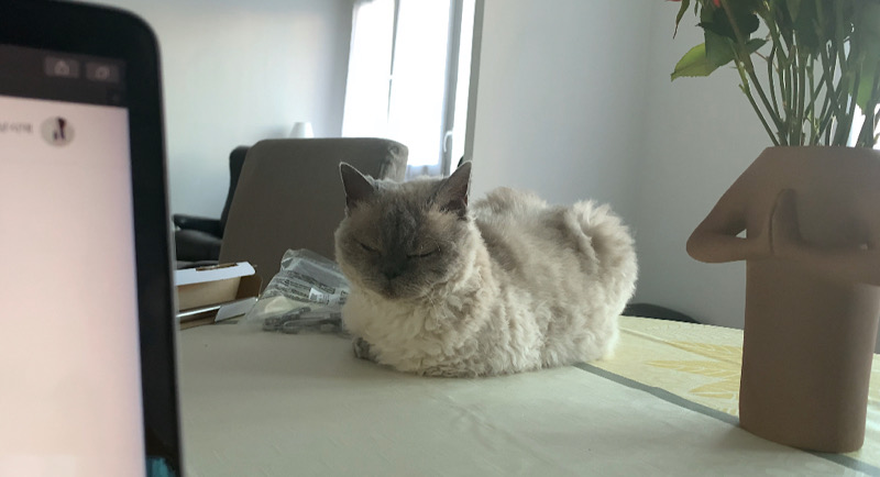 특히 요즘은 내 옆에 둔 의자위에서 잠을 자는데 자기전에 나에게 눈인사를 열렬히 해 주고 또 아침에 내가 일어나면 무스카델은 여전히 그 자리에서 나를 바라보고있다. 너무 죠아... (자서방은 질투심이 폭발하고 있지만)