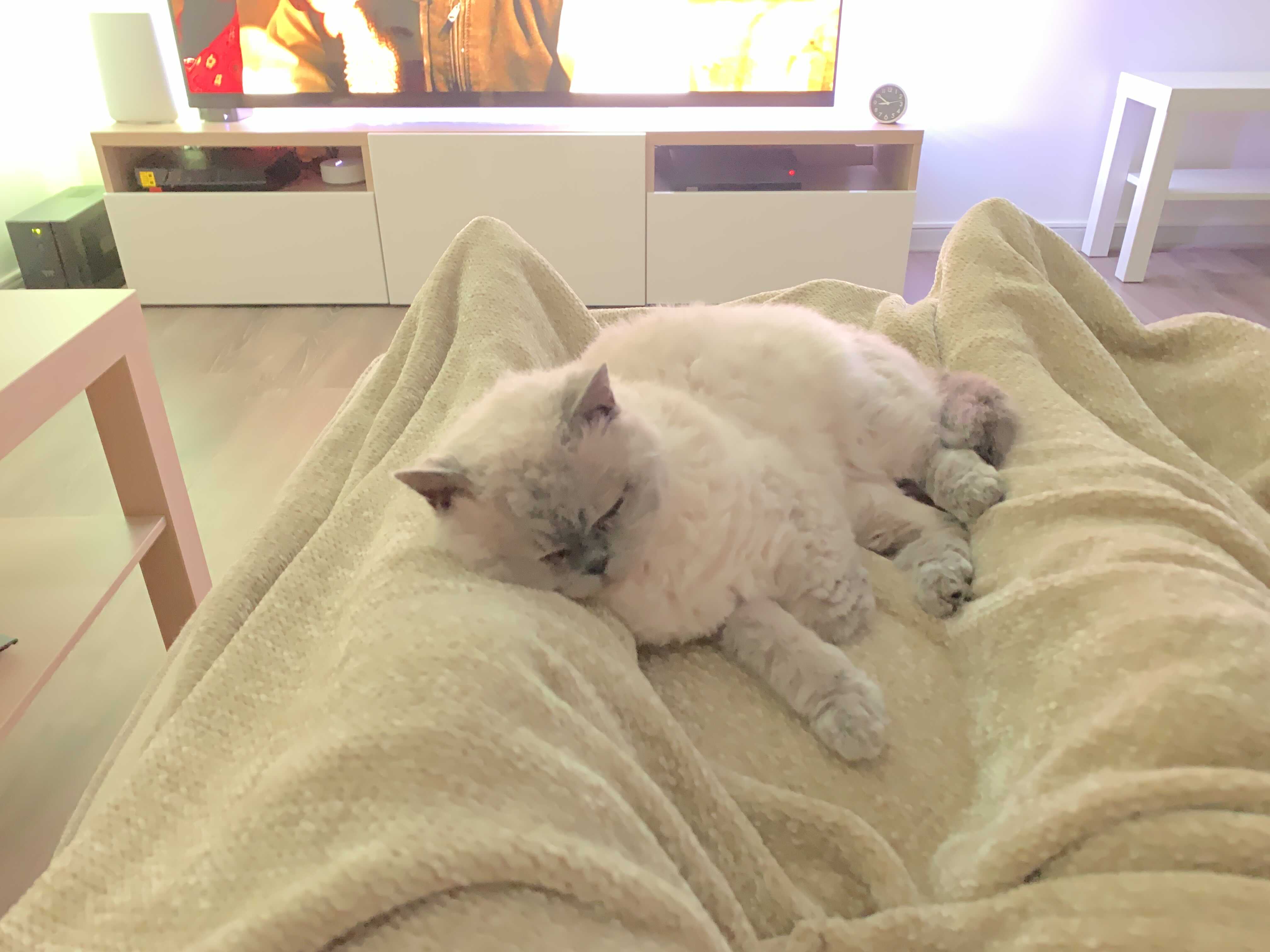무릎사이에 꾹꾹이를 열심히 하더니 어느정도 자리가 다져졌는디(?) 거기에 눕는 무스카델-