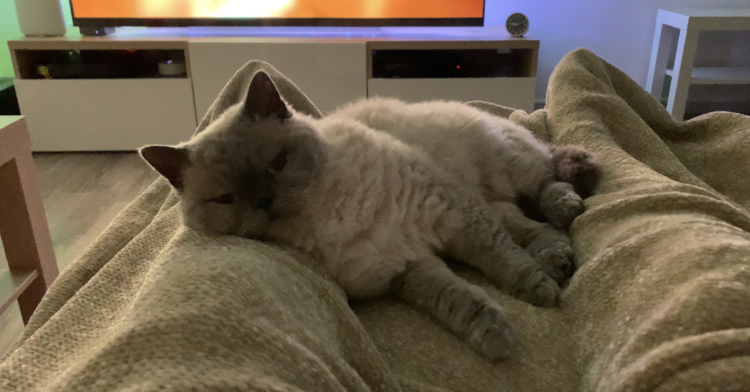 담요를 덮고 있는 내 다리위를 사뿐사뿐 즈려(?) 밟더니 내 다리 사이로 엉덩이를 비집고 들어왔다. 할수없이 틈을 만들어 주었더니 갑자기 꾹꾹이를 하기 시작하는 무스카델-