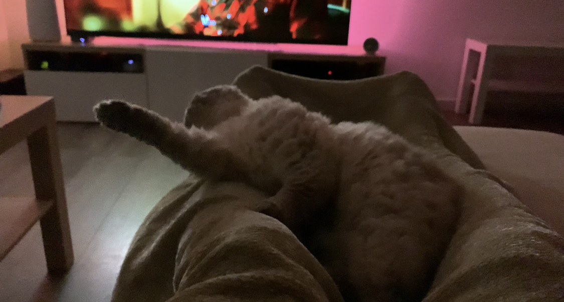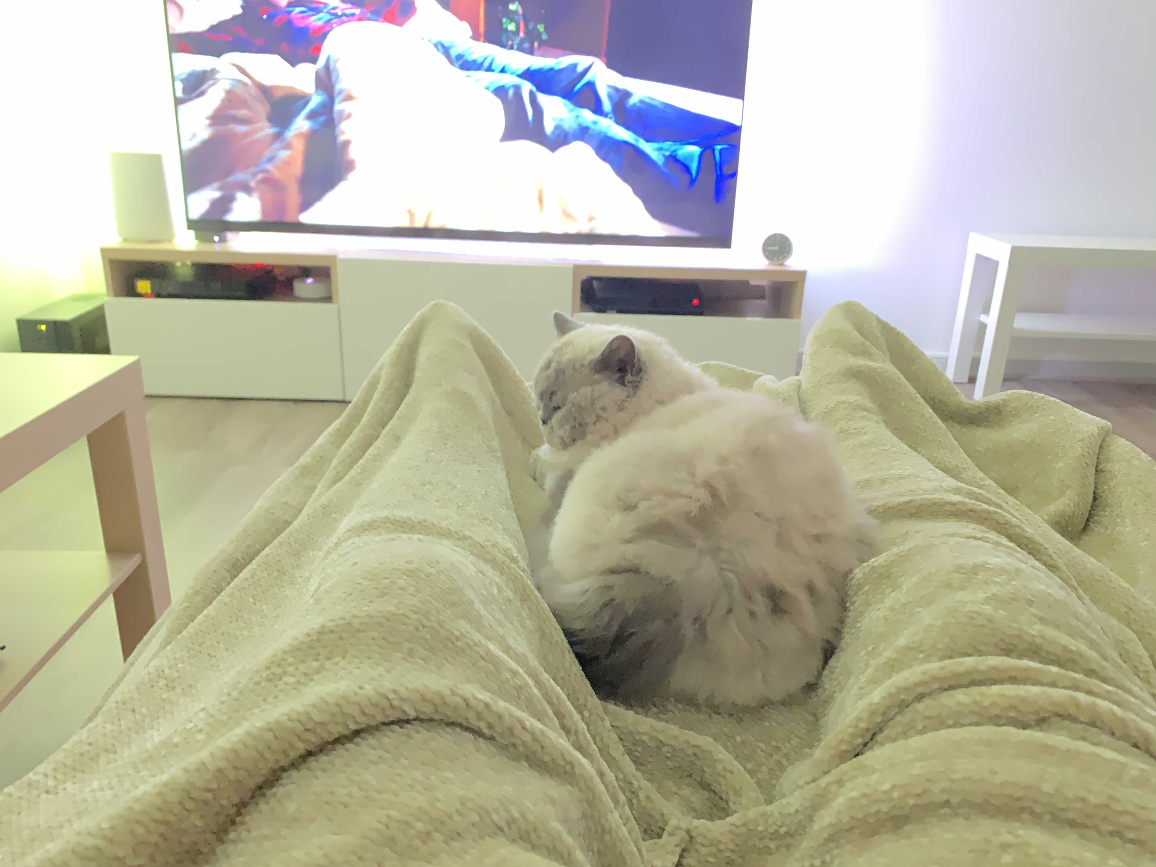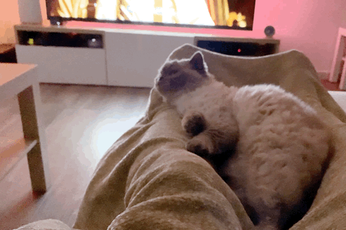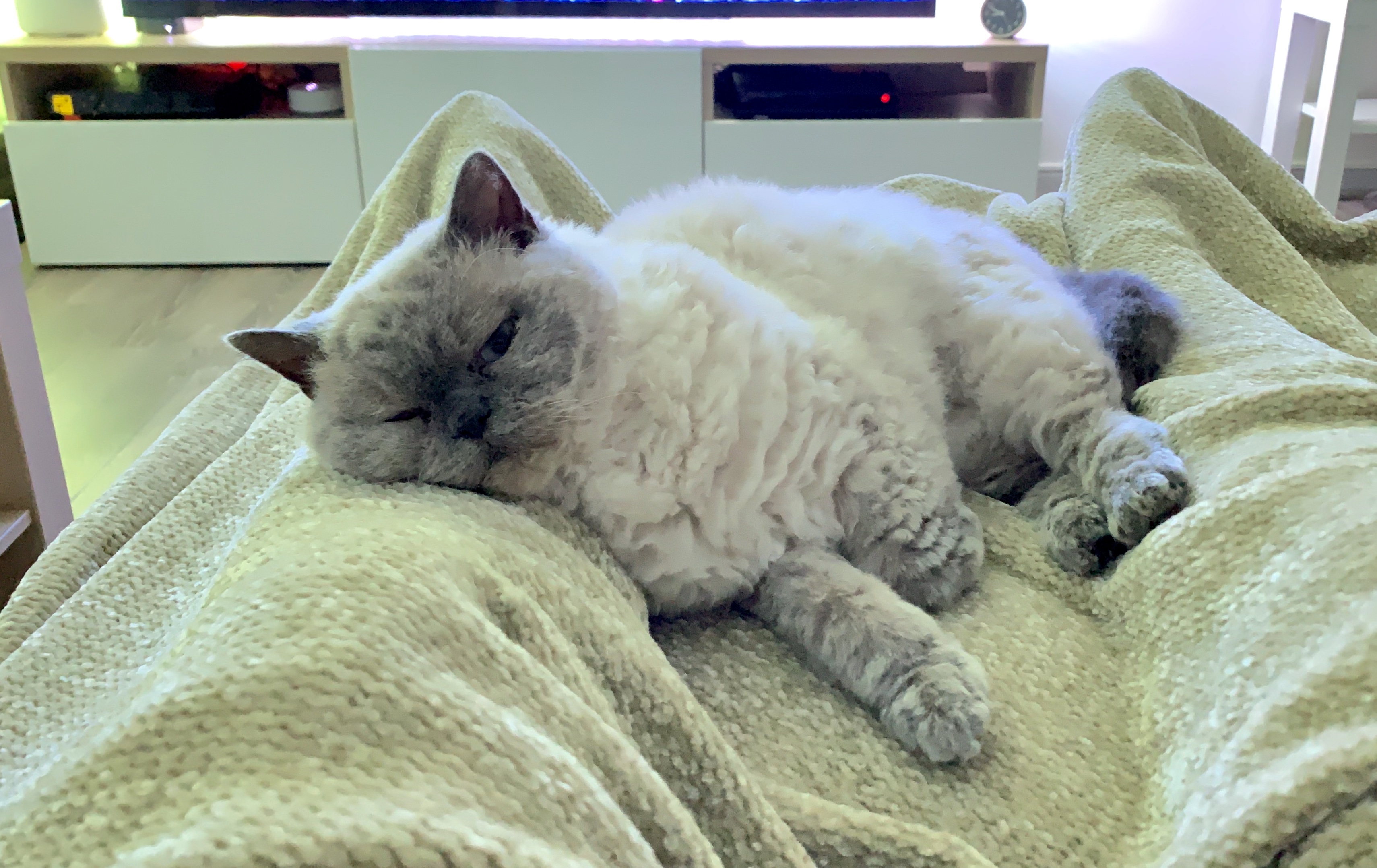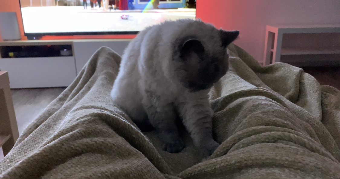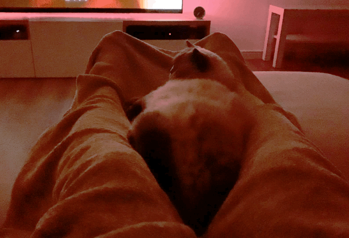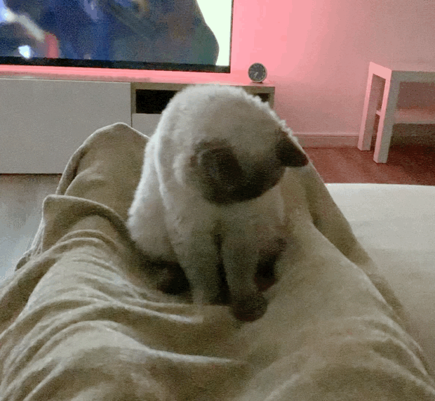 담요를 덮고 있는 내 다리위를 사뿐사뿐 즈려(?) 밟더니 내 다리 사이로 엉덩이를 비집고 들어왔다. 할수없이 틈을 만들어 주었더니 갑자기 꾹꾹이를 하기 시작하는 무스카델-