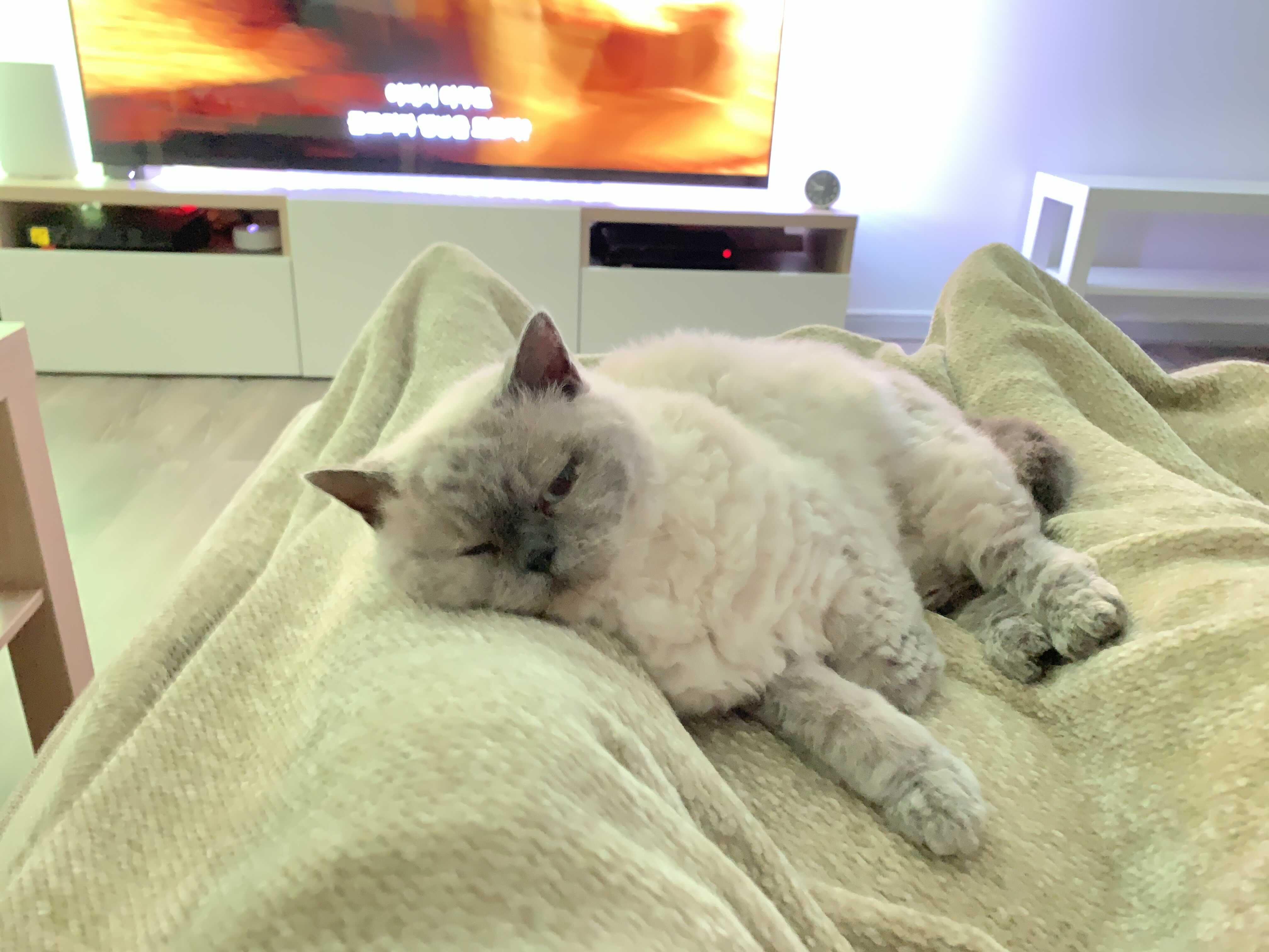 무릎사이에 꾹꾹이를 열심히 하더니 어느정도 자리가 다져졌는디(?) 거기에 눕는 무스카델-