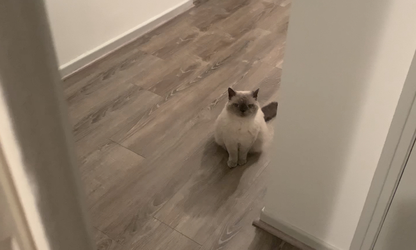 "나 혼자 있을때는 내 옆에 붙어있더니 와이프 일어나는 소리가 나자마자 달려나갔어. 그후부터 화장실, 부엌, 욕실 등 와이프가 가는데마다 졸졸 따라다니고있잖아.