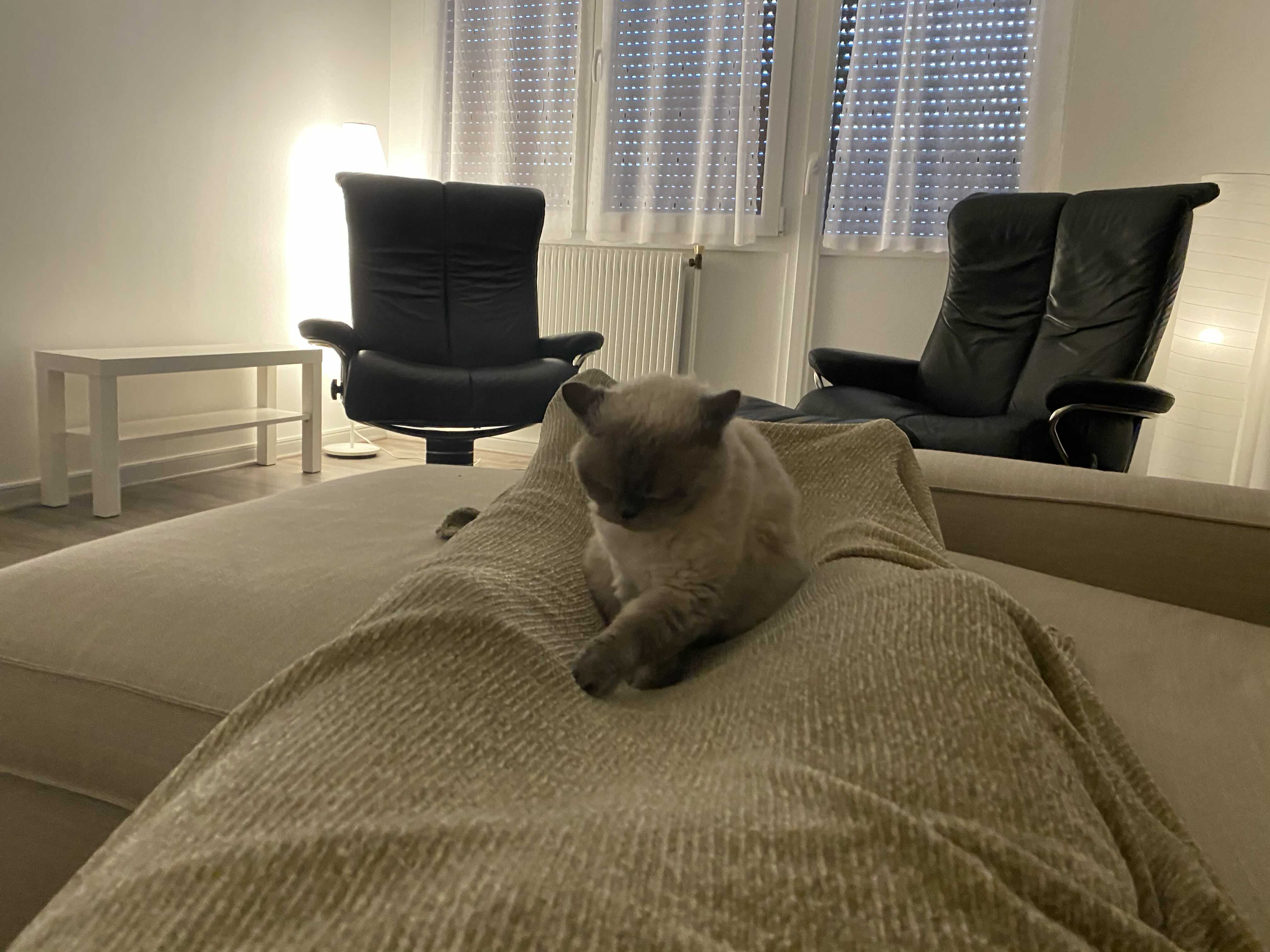 혼자서 담요를 덮고 무스카델을 유혹하는데 성공을 했다며 옆방에 있던 나에게 사진과 메세지를 보내서는 와서 구경하라고 했다. ㅋㅋ