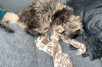 집에왔을때, 무스카델은 스카프에서 이성의 향기를 느낄까?