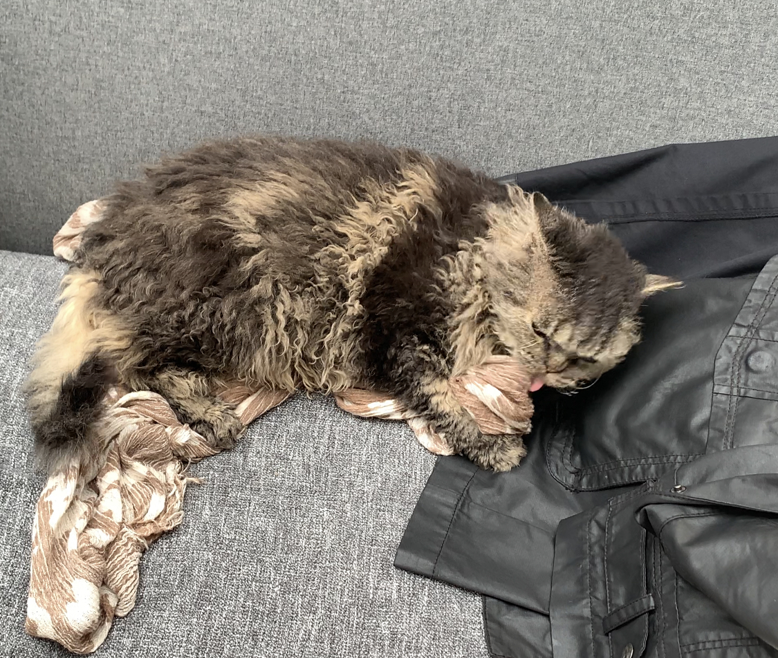 달려나가 보니 모웬이 마치 캣닢에 취했을때처럼 내 스카프에 환장을 하고 뒹굴고있는게 보였다.