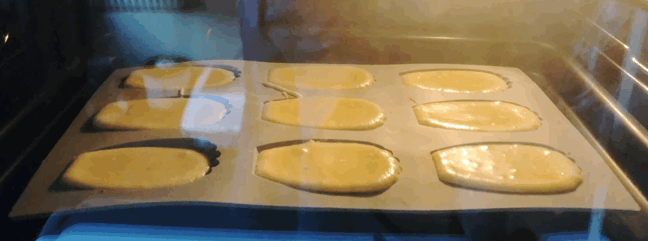 6. 200도로 예열된 오븐에 맨 아랫칸에 넣고 14분 정도 굽기 (저는 갈색이 좋아서 20분 정도 구웠습니다). 오븐에 따라 다르므로 테두리 모양이 너무 빨리 타지 않는지 지켜보면서 불 조정이 필요 합니다. 테두리가 먼저 익고 한가운데가 부풀고나서 조금더 갈색으로 바뀌면 완성!!