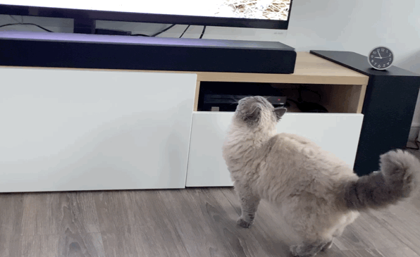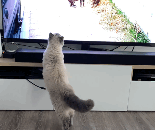 아니나 다를까, 무스카델은 언제 나를 귀찮게 했냐는 듯이 티비 앞으로 쪼르르 달려가서 얌전히 자리를 잡고 앉았다.